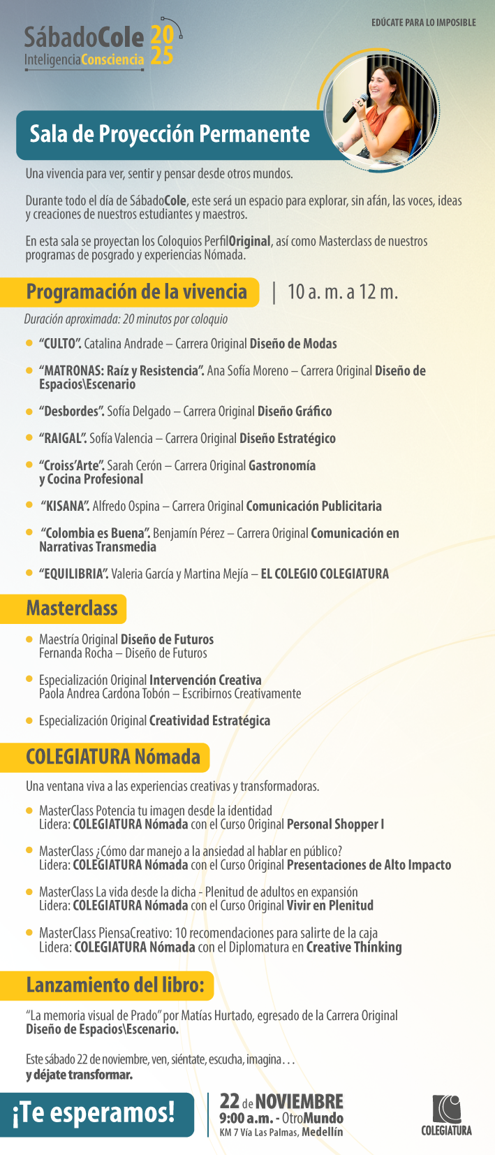 SÁBADOCOLE 2021-2 es una vivencia para visibilizar el potencial transformador de la Común – Unidad COLEGIATURA para expandir su PERFIL ORIGINAL hacia maneras creativas y comunicativas para aportar a la construcción de una nueva humanidad.